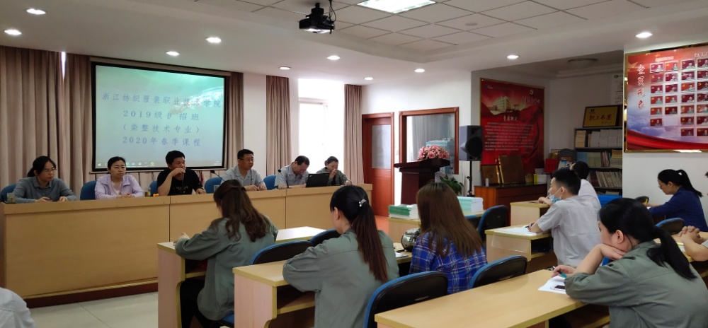 5月30日上午,浙江紡織服裝職業(yè)技術(shù)學(xué)院2019級擴招班(染整技術(shù)專業(yè))2020年春季課程正式開課了。在課前,公司13名學(xué)員在班主任蔣老師的帶領(lǐng)下在課前進行了簡單的開課儀式,公司董事長兼總經(jīng)理莫炳榮、副總莫榮明、總工施道妃工出席了儀式。