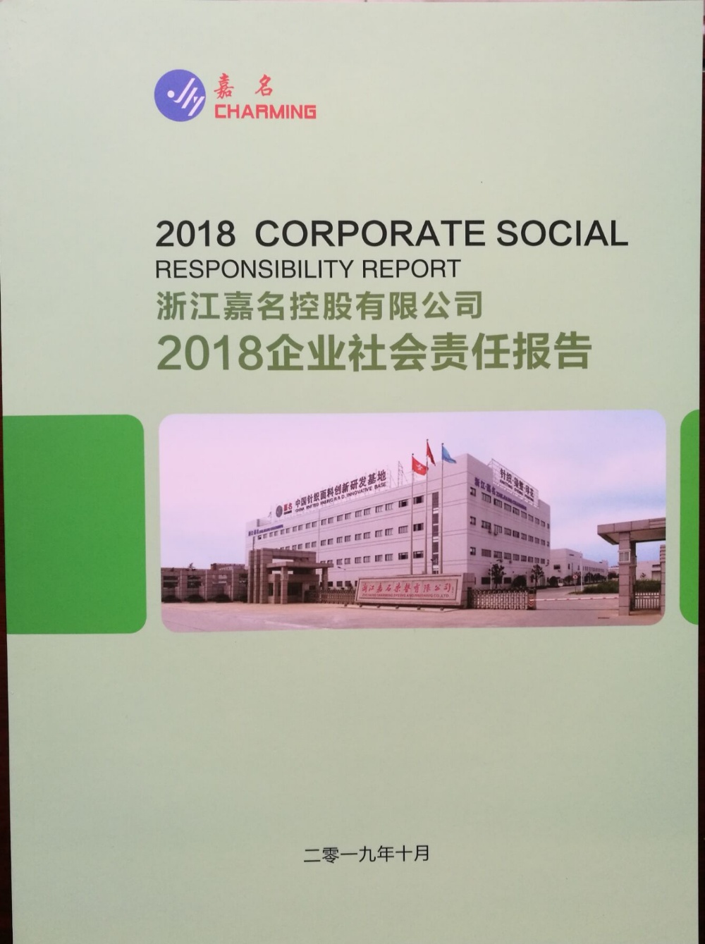 《浙江嘉名控股有限公司2018企業社會責任報告》本著客觀、透明、誠信、規范的原則編寫,共分十一個章節,從責任管理、誠信建設、價值創造、綠色環保、安全生產、垃圾分類、員工權益、黨群工作、企業文化、社會公益等十大責任行動出發,以豐富的內容、翔實的數據和真實的業績,全面展示了2015-2018年公司打造實力嘉名、創新嘉名、誠信嘉名、綠色嘉名、和諧嘉名的實踐情況,彰顯了公司為早日實現“致力成為國內外知名服裝品牌的首選面料供應商”的嘉名夢的信心和決心,更向社會公眾呈現了嘉名作為一家民營企業為履行社會責任,推動行業和當地社會的可持續發展所做出的努力及責任擔當。