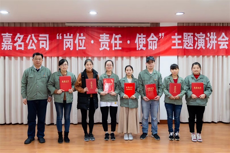 演講結束后,公司黨總支書記莫總講了話,他對各位演講者滿懷激情、積極向上的精神面貌表示肯定和贊許。他從演講中所贊揚的先進人物,以及社會上的先進模范進一步對責任與使命進行詮釋,并希望通過這次演講活動和學習先進人物進一步增強員工的責任感、使命感,更好地激發(fā)工作積極性、主動性和創(chuàng)造性,同時要求廣大員工深化“崗位·責任·使命”主題活動,積極開展提合理化建議和QC小組活動,發(fā)揮大家的智慧和力量,團結一心,共同努力實現(xiàn)嘉名的健康發(fā)展。