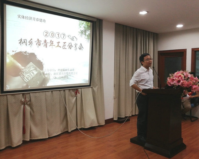 分享會上,團市委書記陳曉雷首先講話,他說,這次活動是團市委根據嘉名莫總的提議,開展的一次“實體經濟●青春建功”桐鄉市青年工匠分享會走進嘉名活動,通過今天“優秀青年工匠”代表的經驗交流,希望嘉名的青年以他們的人生經歷和成長激勵自己,爭做新時代的優秀青年。