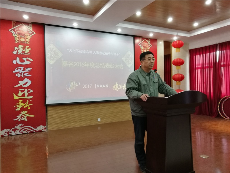 莫總強調,2017年國內外市場形勢仍然十分嚴峻復雜,不確定因素依然存在,同業競爭會越來越激烈,客戶的要求和期望會越來越高。但是宏觀環境有利于嘉名的因素也很多,國家加大實體經濟支持力度,加大供給側改革,加大環境治理,這些給我們嘉名將帶來更多的積極因素。我們有理由相信,2017年將是極不平凡的一年,只要我們堅定信心,積極應對,齊心協力,奮力拼搏,必將會形成機遇大于挑戰,優勢大于劣勢,動力大于壓力,希望大于困難的良好局面。為此,我由衷地希望公司上下團結一心,“大家擼起袖子加油干”, 苦干實干加巧干,不斷突破,不斷超越,為全面完成2017年的各項經營目標任務,繼續走在行業前列作出共同努力!