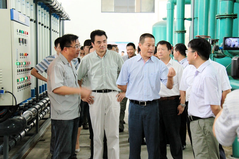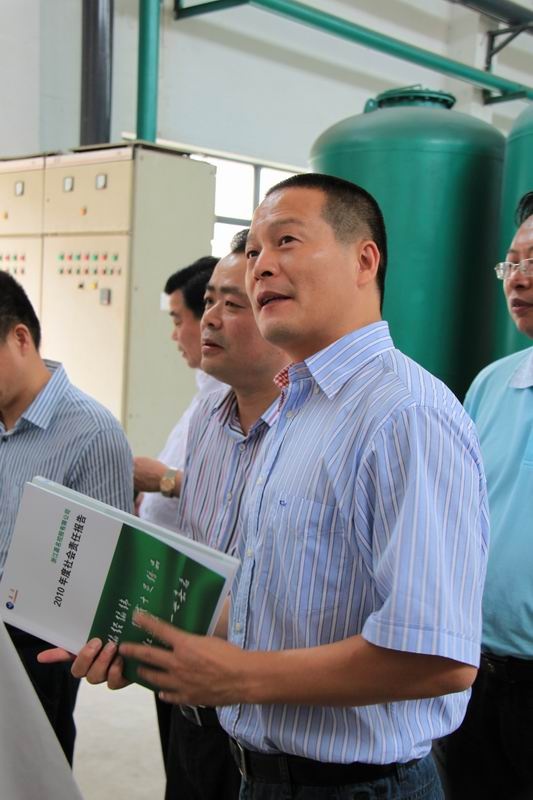 8月3日,中共桐鄉市委書記盧躍東,市委常委、統戰部長沈濟賢,市委常委、副市長王堯祥,市人大副主任沈德興,市政府副市長周民、市政協副主席潘家春及市委辦、市政府辦、市發改局、市環保局、水務集團等部門領導在鳳鳴街道黨委書記葛柏金等陪同下,到嘉名公司調研節能減排工作,公司董事長、總經理莫炳榮接待并介紹情況。