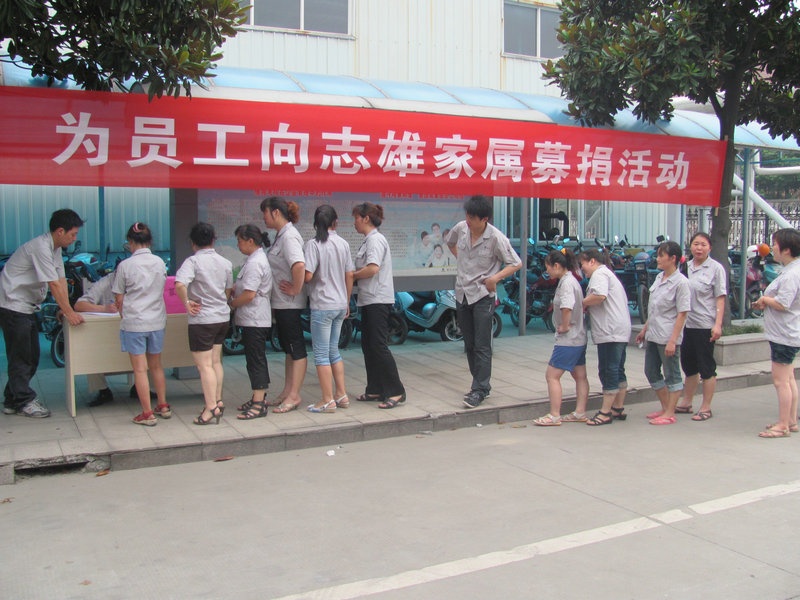 公司染整事業(yè)部員工向志雄于7月7日晨因突發(fā)疾病在居住地病故的不幸消息傳到公司,公司領(lǐng)導(dǎo)非常悲痛,馬上派部門領(lǐng)導(dǎo)赴醫(yī)院做好安撫家屬、喪事處理和善后工作。向志雄年僅32歲,家中有尚有妻子和幼兒,家庭生活陷入困境。對此,公司向其家屬給予了一定的慰問金,與此同時,公司黨支部、工會、團(tuán)支部及時組織開展了為向志雄家屬募捐活動,號召黨團(tuán)員和全體員工伸出援助之手,獻(xiàn)出一份愛心,積極為向志雄家屬捐款。活動迅速得到了全體黨員和廣大員工的積極響應(yīng),紛紛解囊相助,短短一天多時間,共收到507名員工的29976元的捐款,其中染整事業(yè)部蔡小剛捐款3000元,捐款不論多少都體現(xiàn)了員工們的愛心。7月19日,公司將員工們的捐款送到了向志雄家屬手中,向志雄家屬對公司和員工們的誠摯關(guān)愛表示衷心感謝。